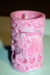Krásně vzorovaná svíčka s motivem slona.44x74mm. Možnost výběru barvy a vůně. Cena 45Kč.